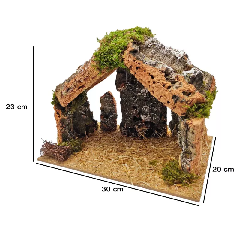 El diseño de este portal está pensado para albergar las figuras tradicionales del pesebre, lo que lo convierte en la opción ideal para completar tu conjunto navideño. Con medidas aproximadas de 30 x 20 x 23 cm (largo x ancho x alto), se adapta perfectamente a cualquier espacio donde desees exhibir tu belén.