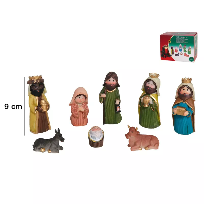 Cada figura destaca por sus detalles delicados y colores vibrantes que capturan la esencia de la tradición cristiana, convirtiéndose en el adorno perfecto para celebrar estas fechas especiales en familia. Este set no solo es ideal para representar la escena del nacimiento, sino que también aporta calidez y alegría a cualquier espacio donde se coloque.