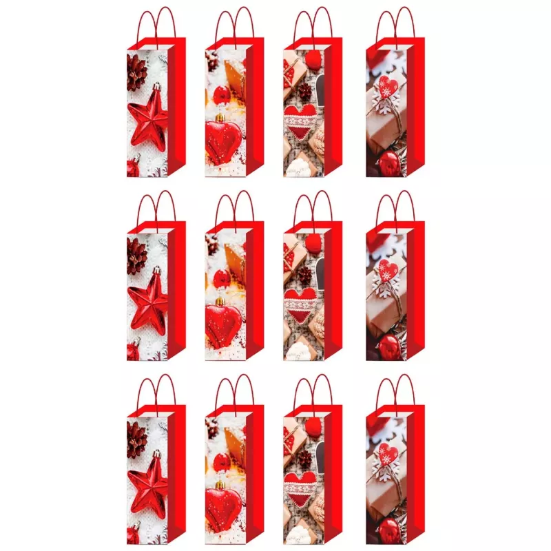 Descubre el Pack de 12 bolsas de papel decoradas para botella de vino Tradineur, la solución perfecta para presentar tus regalos de forma elegante y práctica. Con asas de cuerda resistentes y un diseño festivo, estas bolsas son ideales para guardar, regalar y envolver botellas de vino, champán o cualquier otra bebida especial durante Navidad o cualquier ocasión especial.