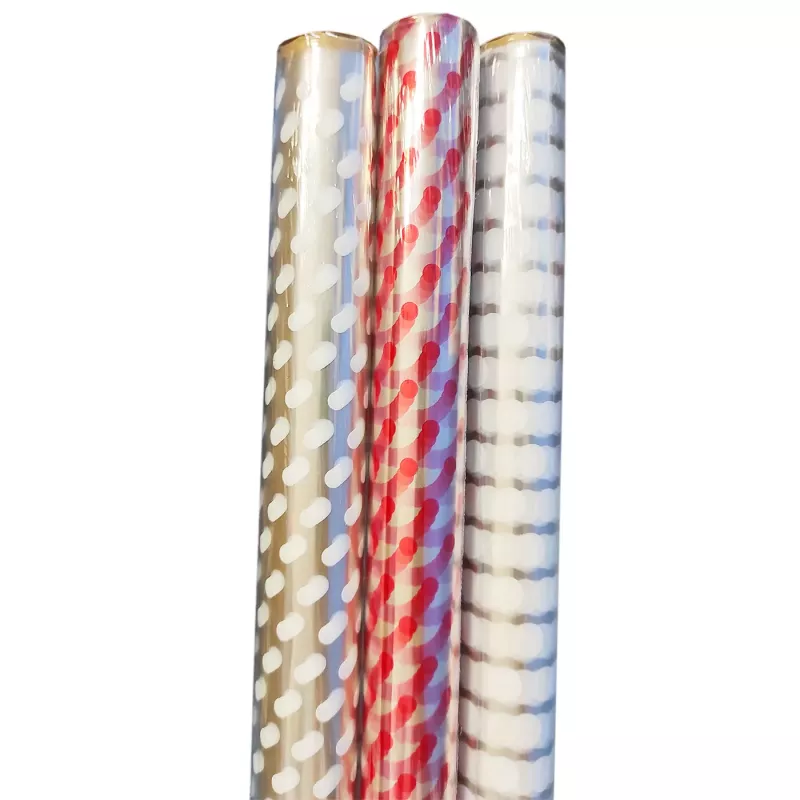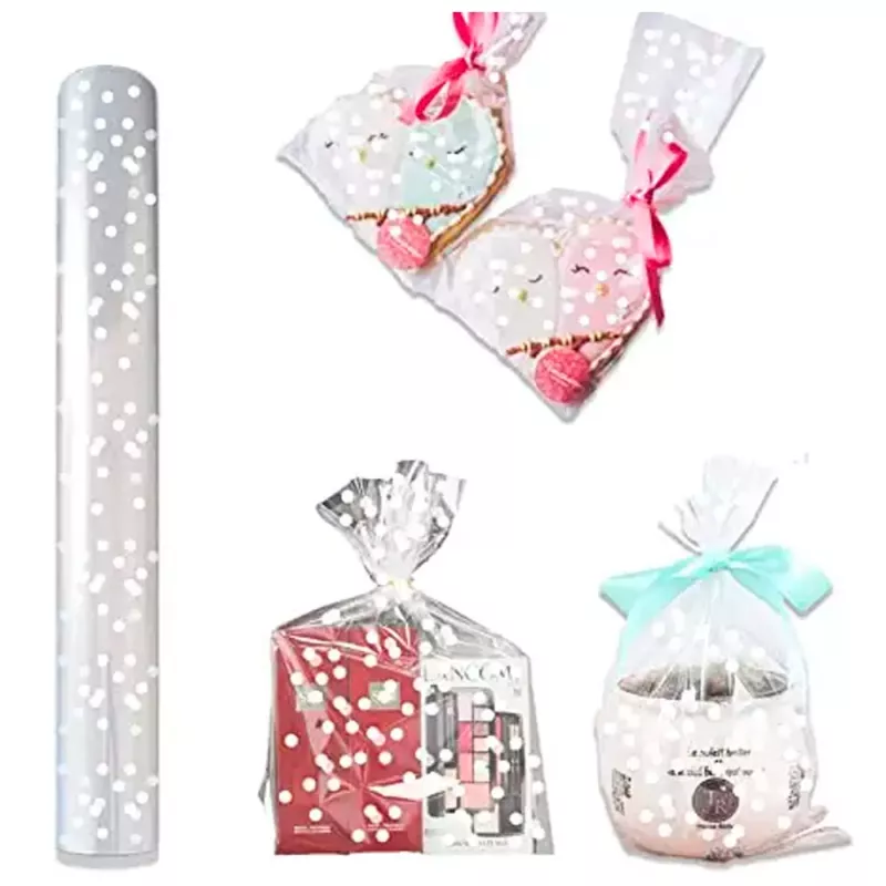 Cada rollo mide 70 x 150 cm, ofreciendo un tamaño generoso que permite envolver obsequios de diferentes formas y tamaños sin preocuparte por quedarte corto. Además, la transparencia decorada de estas hojas realza el contenido del paquete, permitiendo que el regalo luzca visible y atractivo, mientras se mantiene protegido.