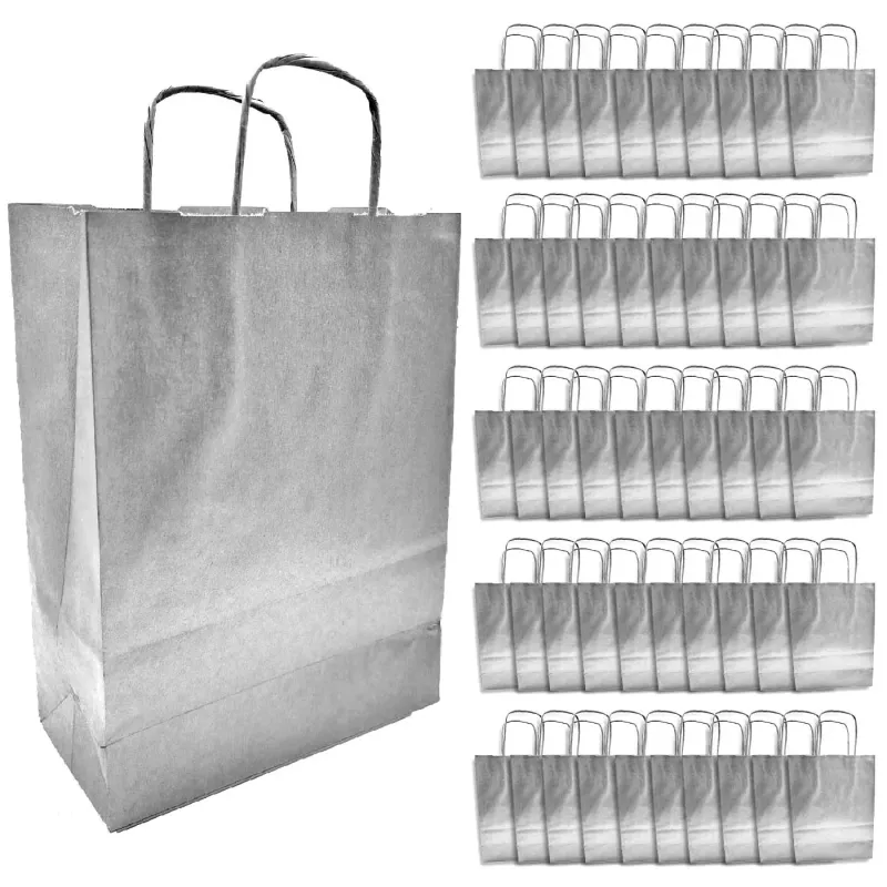 Descubre el pack Tradineur de 50 bolsas Kraft tamaño "M", diseñadas especialmente para que puedas guardar y presentar tus regalos de manera elegante y práctica. Con unas medidas de 27 x 37 cm y un sofisticado color plata, estas bolsas son perfectas para cualquier ocasión especial como fin de año, año nuevo o Navidad. Su resistente material Kraft garantiza durabilidad y estilo para que tus obsequios luzcan impecables.