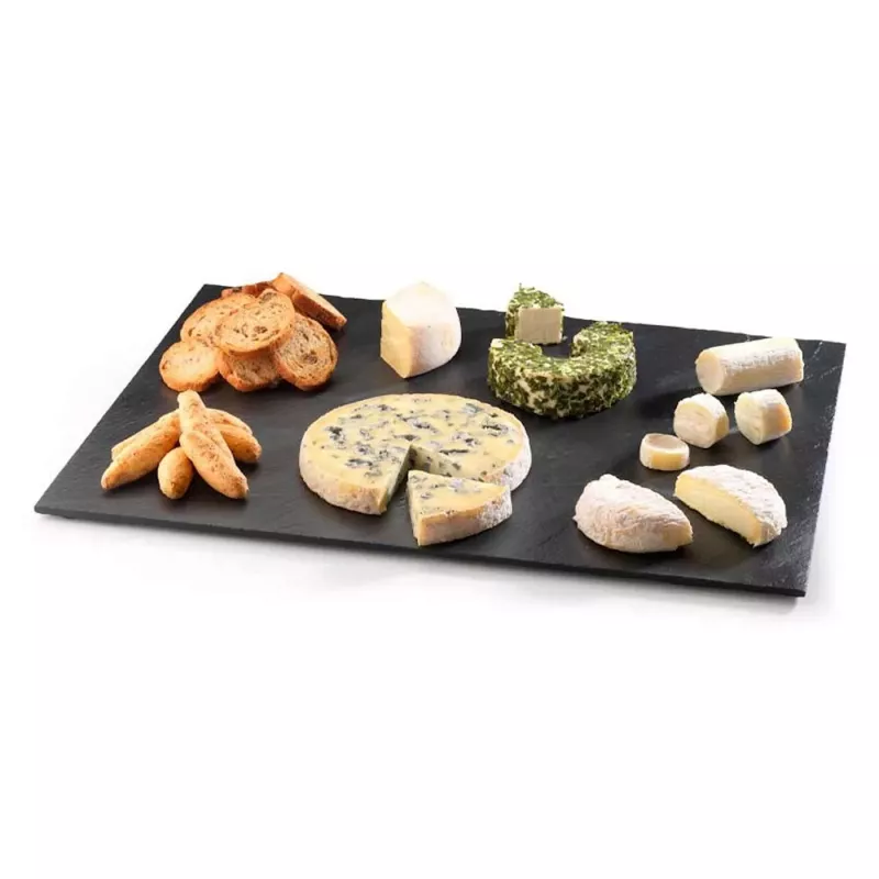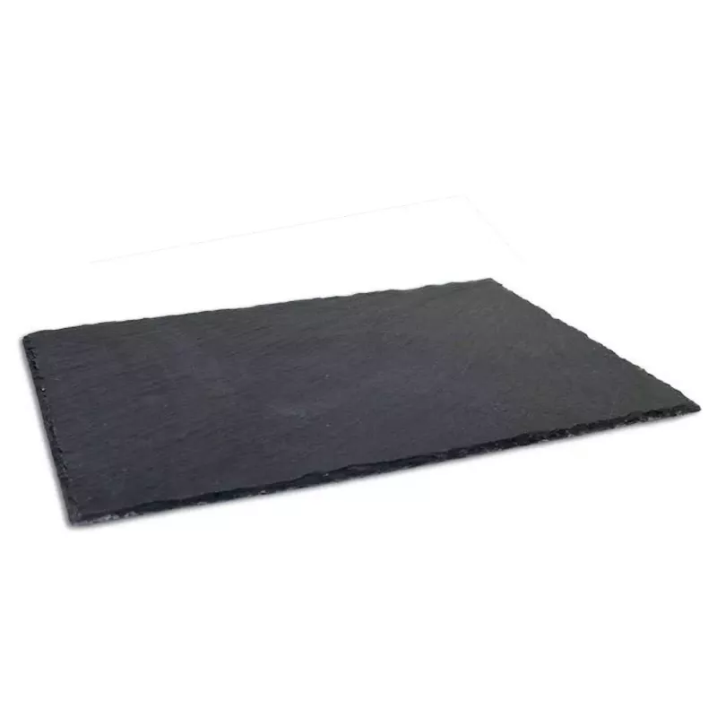 La bandeja de pizarra 100% natural es una opción ideal para aquellos que disfrutan de recibir a sus invitados con estilo. Con unas medidas aproximadas de 25 x 15 cm y un grosor de 0,5 cm, esta bandeja presenta un encantador canto con acabado rústico que la convierte en un elemento decorativo atractivo además de funcional.