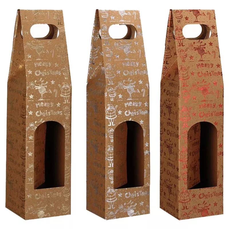 Las cajas se entregan desarmadas, lo que permite un fácil almacenamiento y montaje rápido antes de usarlas. Con un tamaño aproximado armado de 38,5 x 8,8 x 8,3 cm, son compatibles con la mayoría de botellas de vino estándar, combinando funcionalidad con un diseño festivo que realza cualquier regalo navideño. Su acabado elegante y detalles cuidadosamente diseñados convierten a estas cajas en una opción práctica y decorativa para sorprender durante las fiestas.