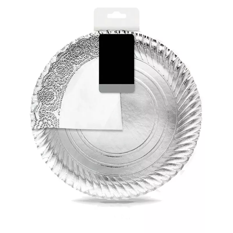 La Tradineur es la bandeja perfecta para presentar tus pasteles y postres con un toque elegante y sostenible. Esta bandeja redonda de cartón plateado, con un diámetro de 30 cm, está diseñada especialmente para fiestas, celebraciones y todo tipo de eventos donde la presentación de tus dulces sea protagonista.