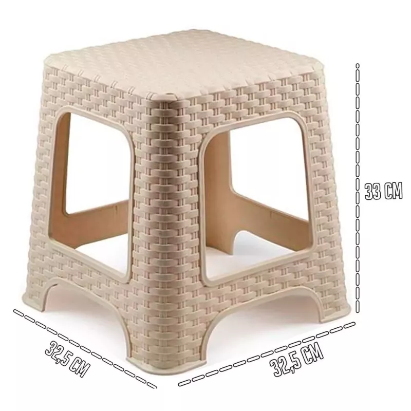 Descubre el Taburete de plástico Tradineur con acabado en imitación rattan, diseñado para aportar un estilo natural y elegante a cualquier espacio de tu hogar. Su textura semejante al mimbre combina la belleza del diseño tradicional con la resistencia y facilidad de mantenimiento del plástico, convirtiéndolo en una pieza versátil y funcional.