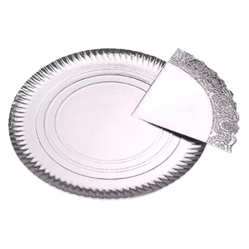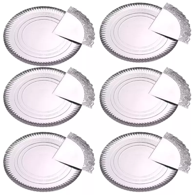 Descubre el Pack de 6 bandejas redondas de cartón Tradineur, la solución perfecta para presentar tus pasteles y postres de manera elegante y práctica. Cada bandeja cuenta con un diseño en color plata, un diámetro de 30 cm y viene acompañada de una delicada blonda de papel con encaje, que añade un toque sofisticado a cualquier evento o celebración.